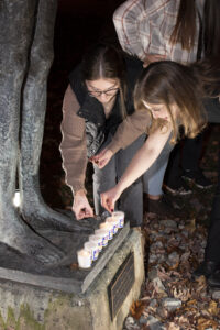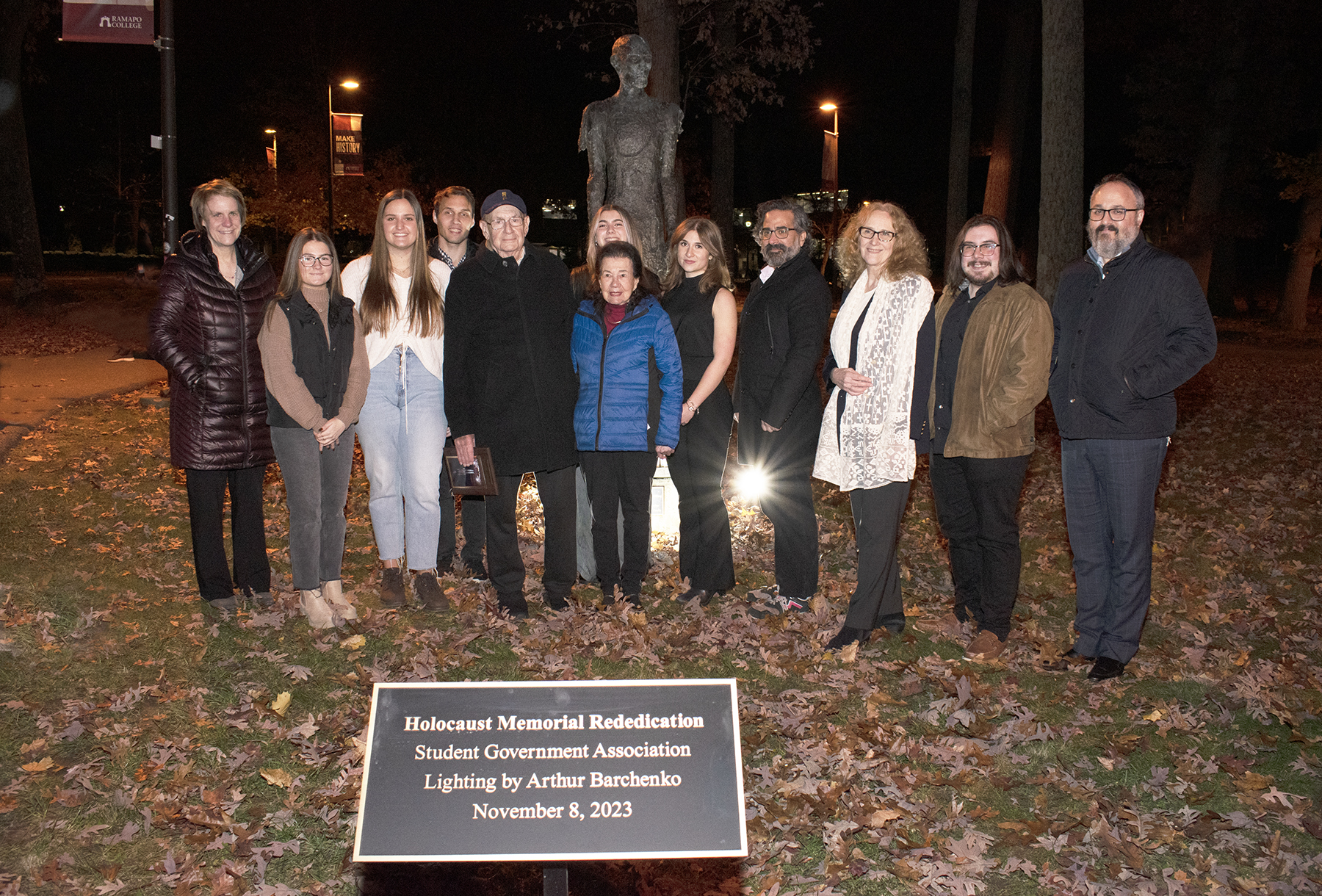 Led by Ramapo Students, we rededicated the “One Man in Memory of Six Million” on Wednesday, December 6. We thank Arthur Barchenko, member of the Gross Center’s Advisory Board, for donating and designing the lighting. We thank Yvonne Manheimmer-Lober and Judith Peck for their inspiration. We thank Ramapo’s own CantaNOVA Singers and Ramapo Chabad’s Rabbi Chanoch Kaplan for their meaningful contributions to the ceremony.