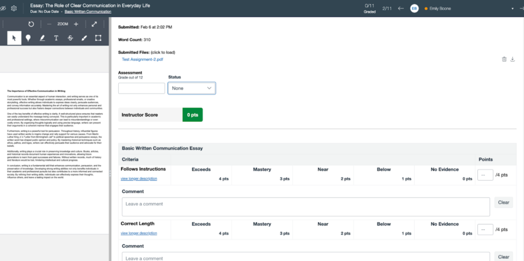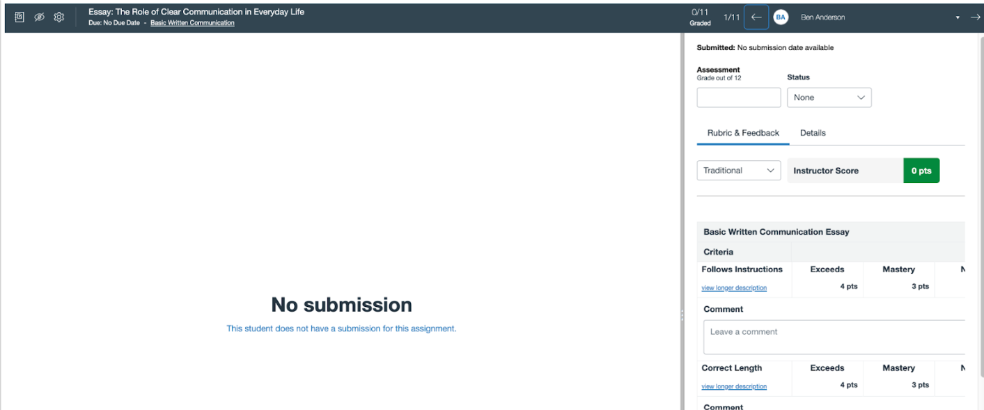 Instructors can edit the submission status using the updated Status drop-down menu.