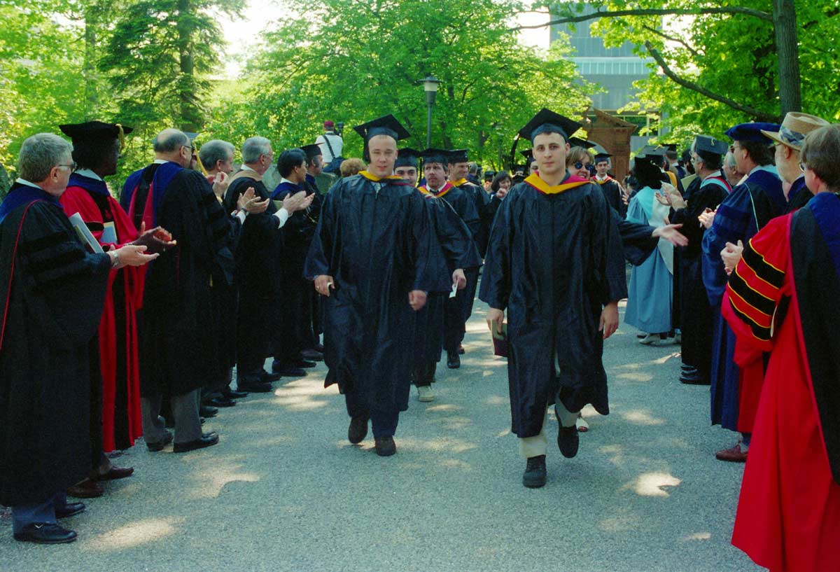 Nearly 30 years later, Arching has become a signature Ramapo event. The tradition began when Commencement was held on campus and included a walk from the academic buildings to the Bandshell. Today, graduating students return to campus before Commencement for a final walk under the Arch with faculty, staff and family cheering them on, meeting at the bottom of Mansion Road for a festive sendoff, complete with music and food.