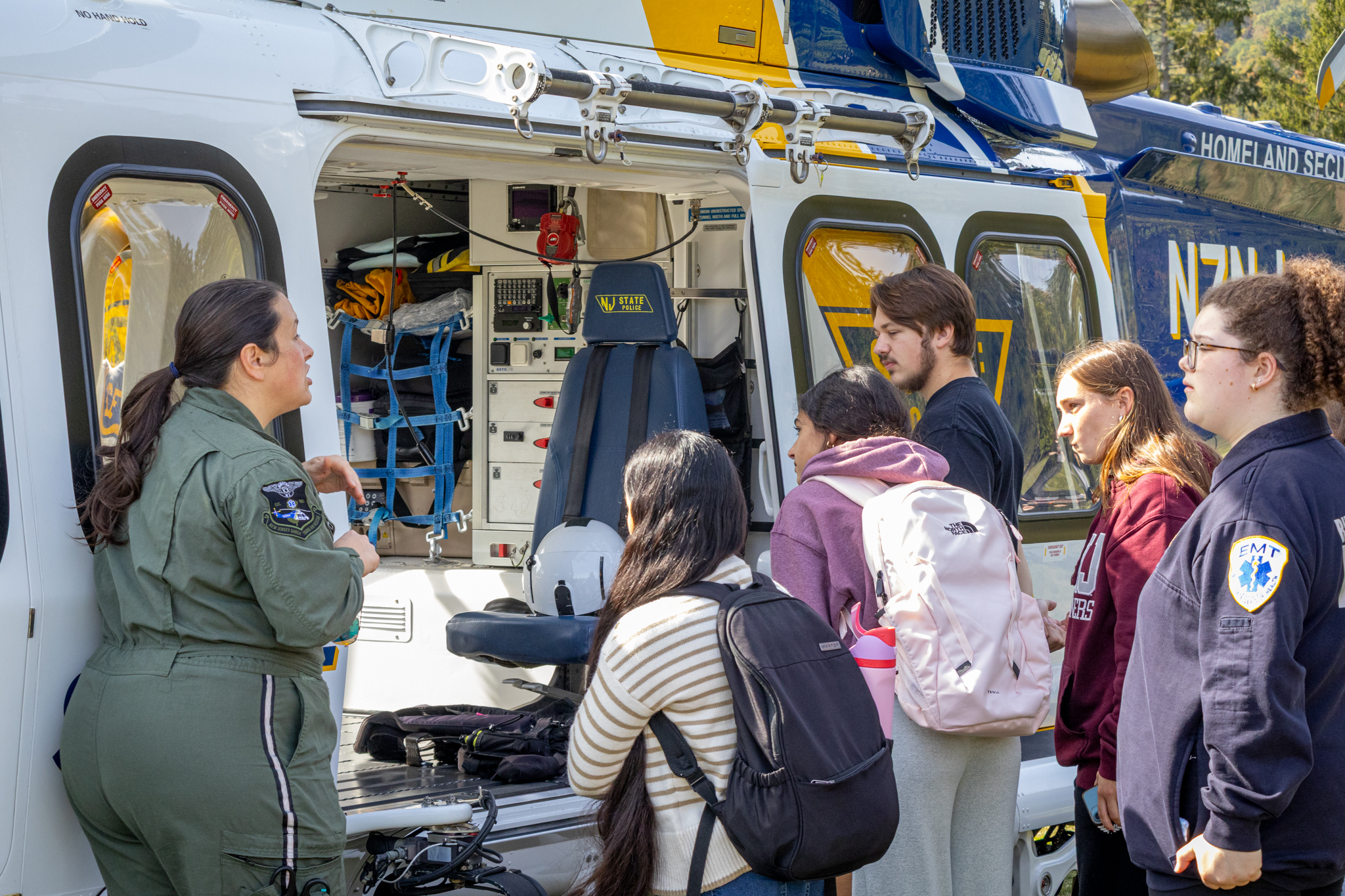 Benitez recently seized the opportunity to learn from Flight Nurse Amy Holland, who works for the University Hospital in Newark. Holland was aboard a New Jersey State Police NorthSTAR medevac helicopter that landed on Ramapo’s Mahwah campus for a special demonstration last month.