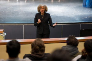 Former Army Surgeon General Nadja West spoke to students in Ramapo’s Principles of Public Policy course.